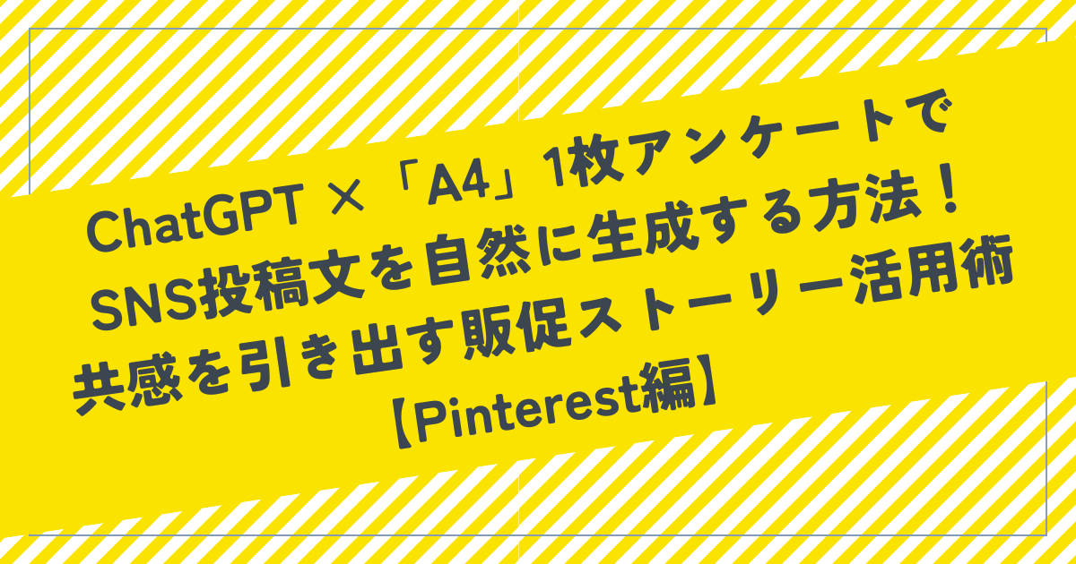 Pinterestは視覚から入る検索プラットフォームです。保存されやすい一方、画像と説明文の役割分担ができていないと、クリックやプロフィール遷移につながりにくい課題があります。 本記事では、「A4」1枚アンケート(Q1〜Q5)の“時系列ストーリー”をピン画像のテキストとピン説明文に写し替える手順、そのまま使えるプロンプト、そして実際の出力例(2事例)をまとめました。
