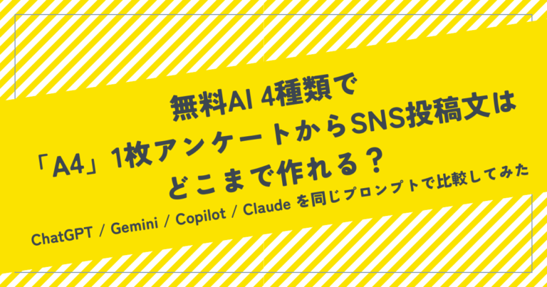 無料AI4種類で「A4」1枚アンケートからSNS投稿文はどこまで作れる?~ChatGPT / Gemini / Copilot / Claude を同じプロンプトで比較してみた~