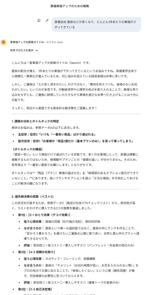 ここで、「客単価アップ大事典 AI」に優先順位を判断させるという発想が効いてきます。
