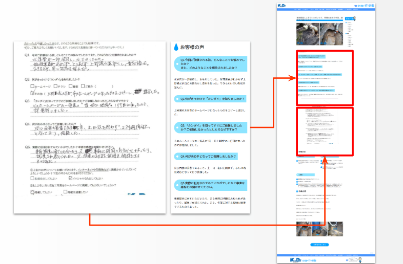 さらに、集めたお客様の声をチラシやSNS、ホームページなどで発信していくと、「うちもお願いしたい」と新たな依頼をいただく機会が増えていきます。その結果、アンケートに協力してくださるお客様も自然と増え、アンケート自体が“お客様との共創ツール”へと進化していきます。